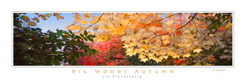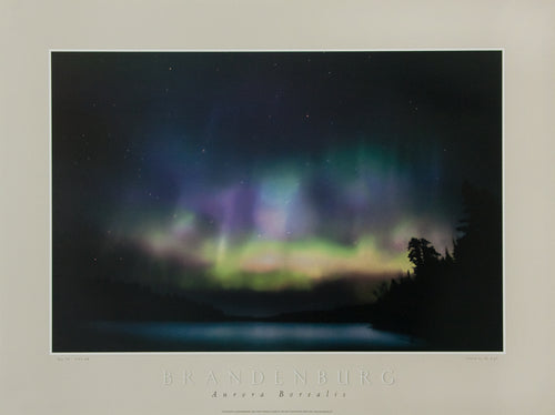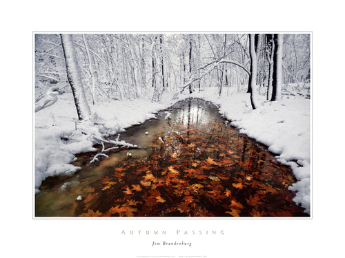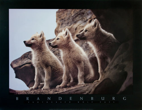 24"x33" reproduction print featuring Jim Brandenburg's image of Minnesota timber wolves in the forest. Unsigned. Beige border with graphics.